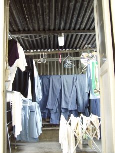 洗濯係の女性が作業の際、壁で衣類を汚して
